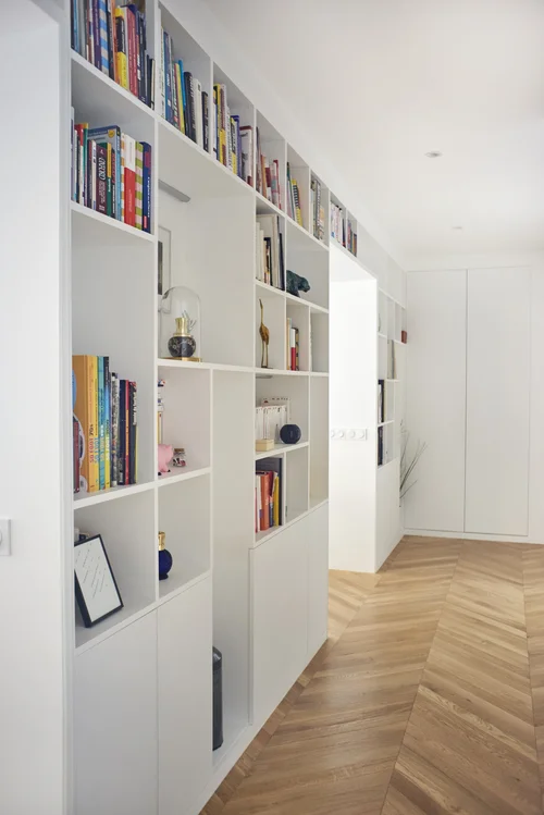 This challenging apartment deserved a new project, to reclaim its many assets and imagine a functional living space : in fact, the floor surface was rather small compared to the generous volume.